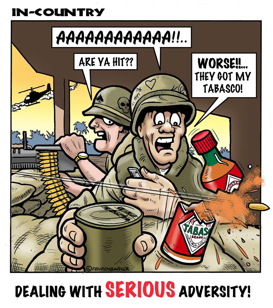 Phil enlisted in the Army in 1965 where you served for years in Vietnam. He became a graphic designer and has worked for the state of Oregon for 26 years. He retired in 2003 and started the Cartoon "In-Country". The cartoons reflect his experiences during his tour of duty in South Vietnam.