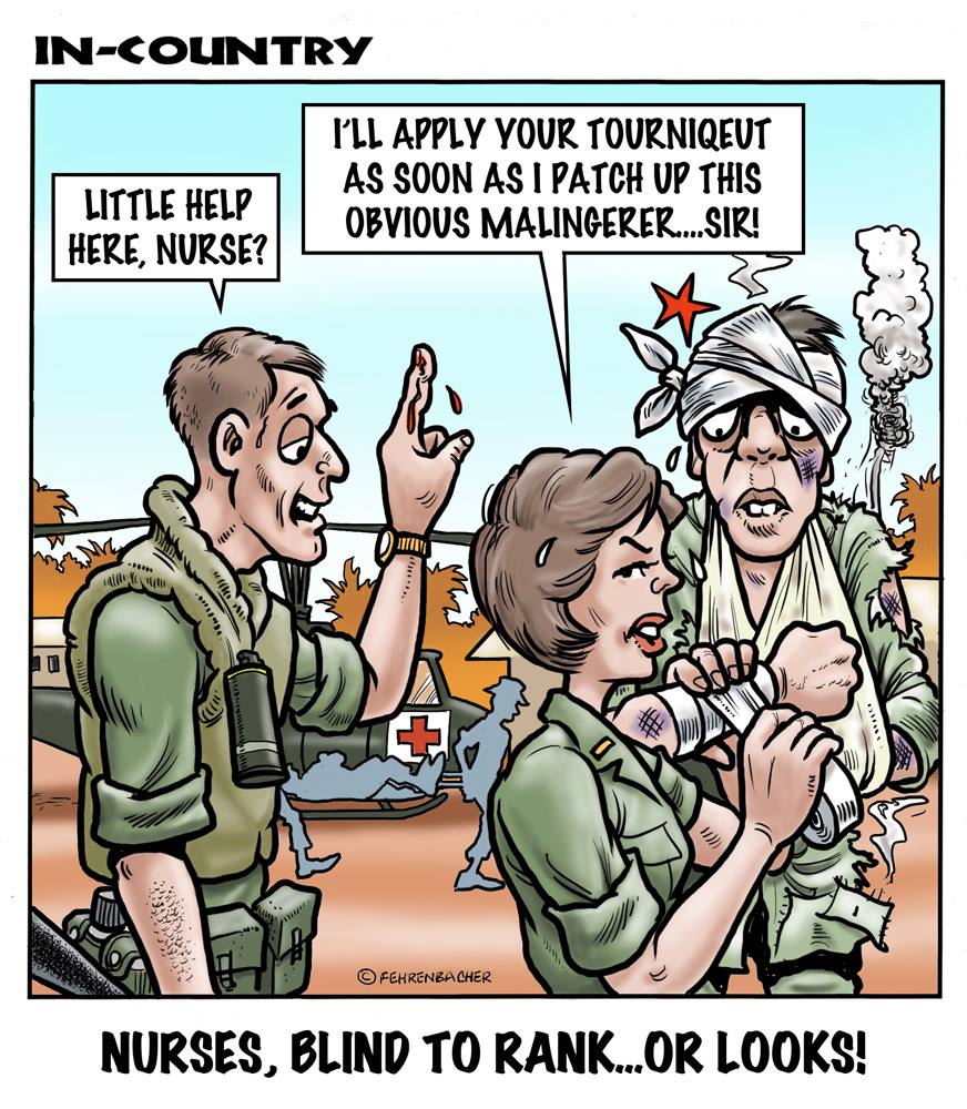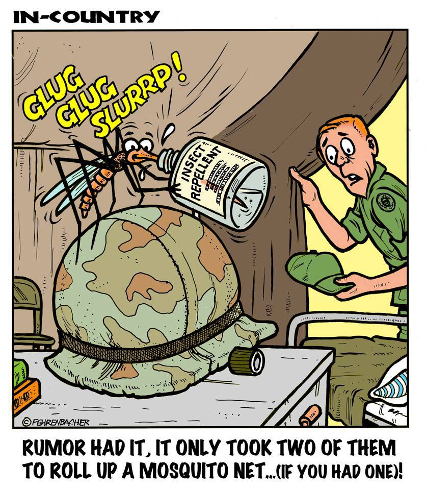 Phil enlisted in the Army in 1965 where you served for years in Vietnam.  He became a graphic designer and has worked for the state of Oregon for 26 years.  He retired in 2003 and started the Cartoon "In-Country".  The cartoons reflect his experiences during his tour of duty in South Vietnam.