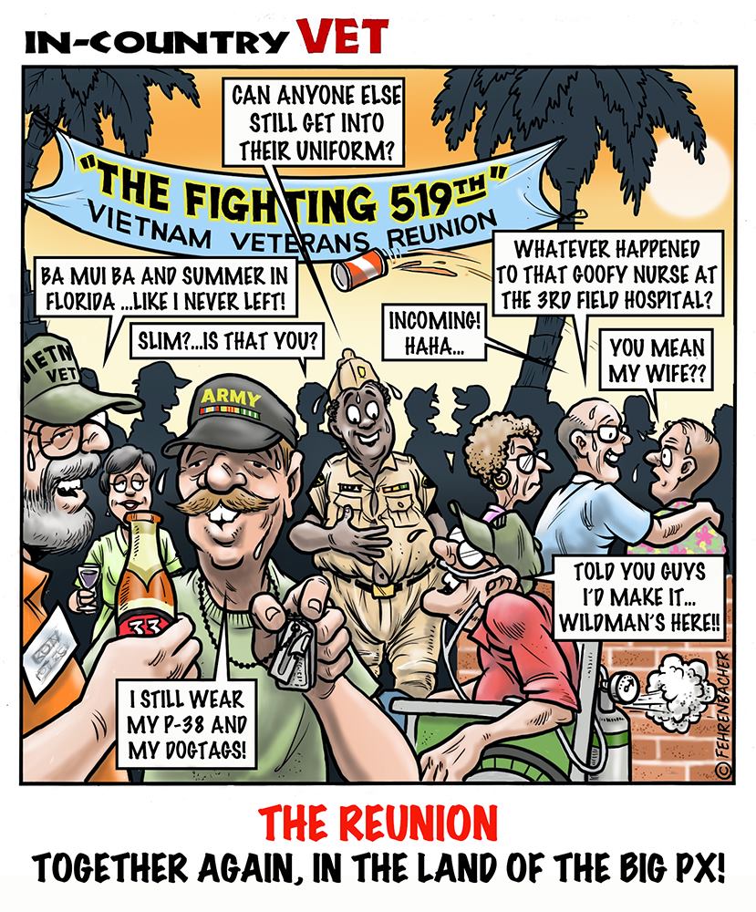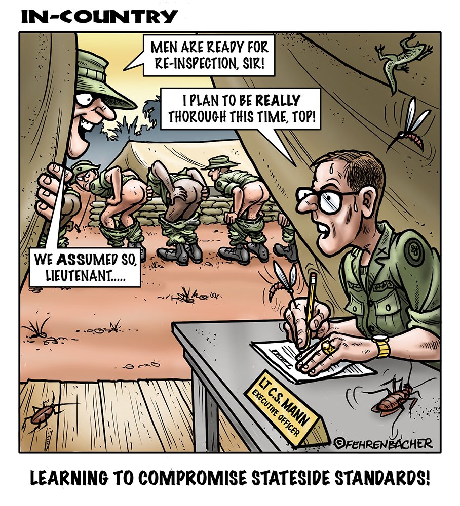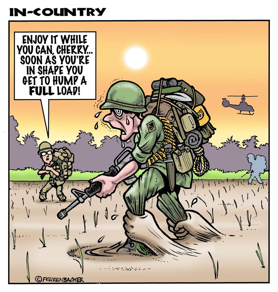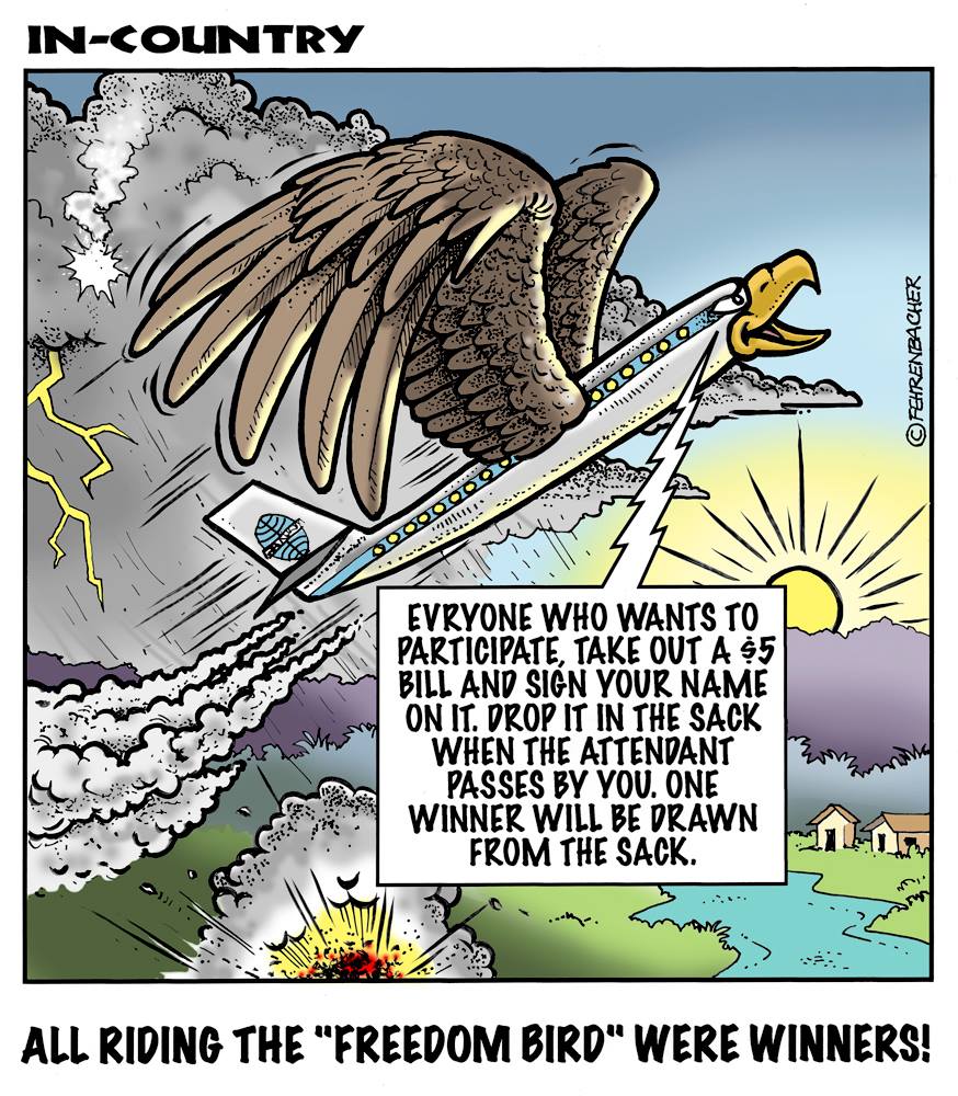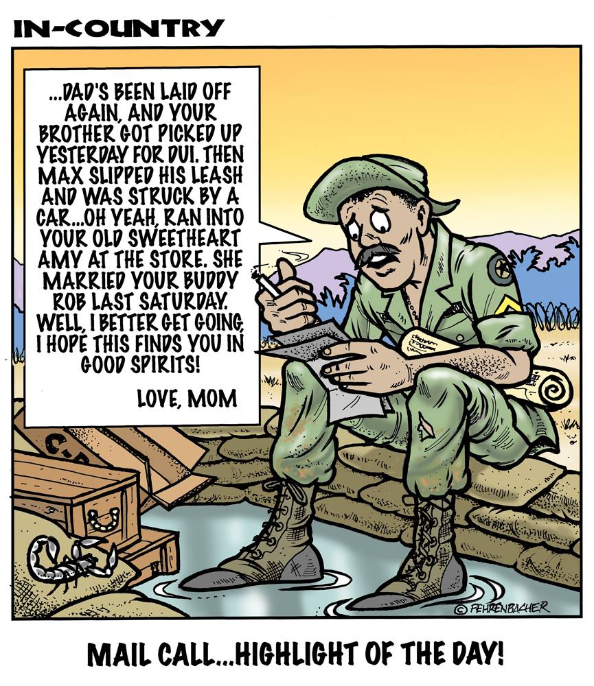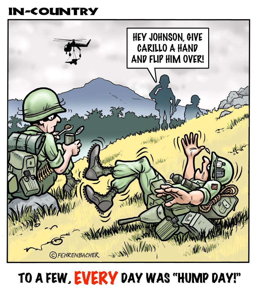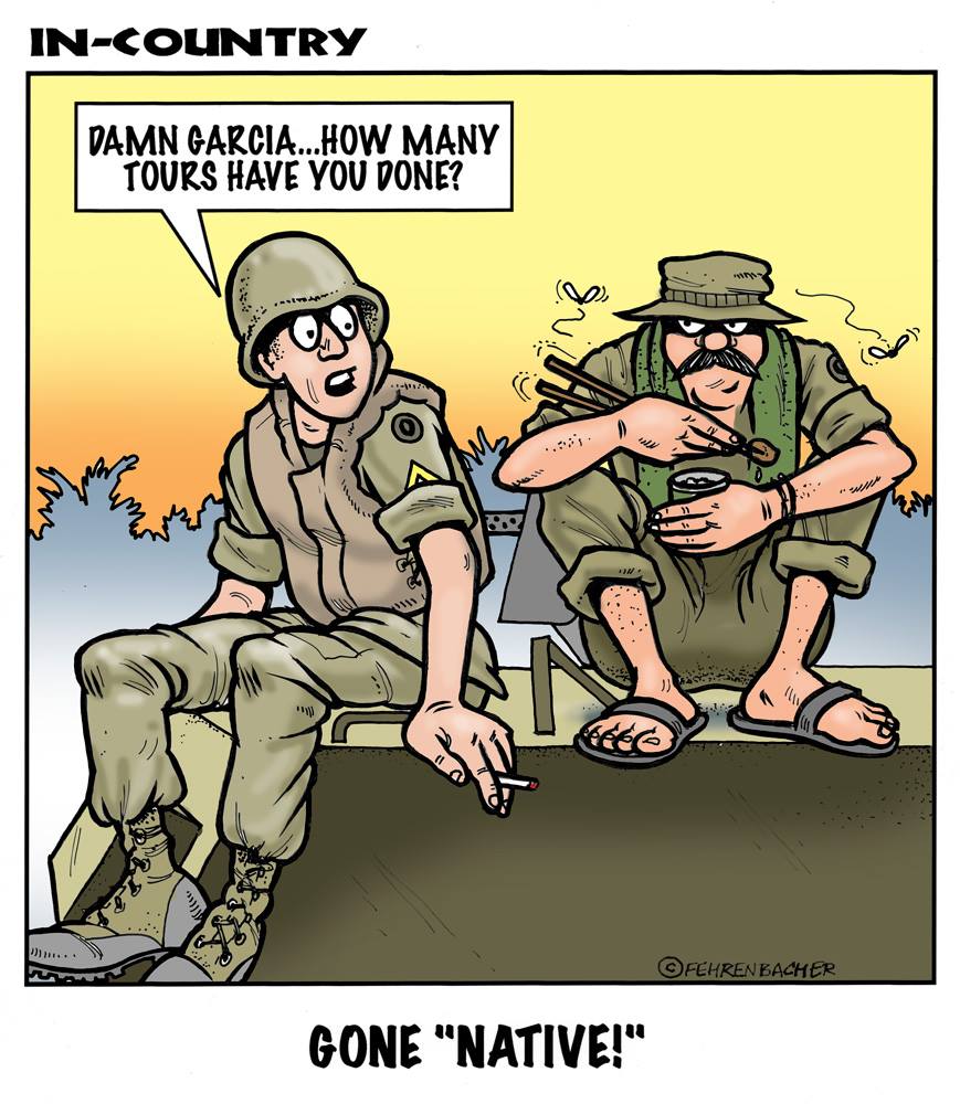 Phil enlisted in the Army in 1965 where you served for years in Vietnam. He became a graphic designer and has worked for the state of Oregon for 26 years. He retired in 2003 and started the Cartoon "In-Country". The cartoons reflect his experiences during his tour of duty in South Vietnam.